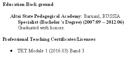俄罗斯 本科 在读TESOL L签 现在深圳 6年教学经验 小学成人都教过 求职深圳全职