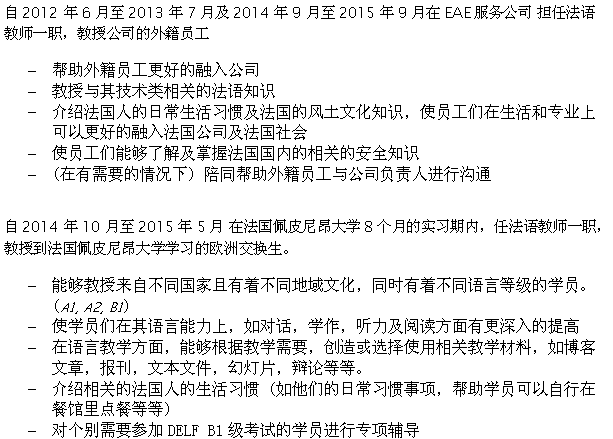 法国 硕士 在日本 在英国做过一年交换生 在上海工作过半年 有推荐信 学过1年汉语 求职上海 幼儿园最好 办理工签