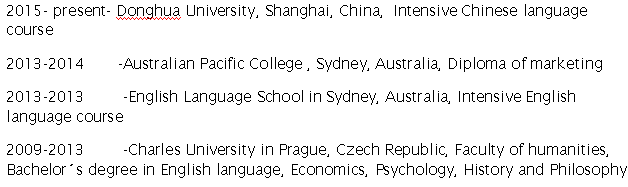 捷克 英语专业本科 在澳大利亚读过两年 现在上海东华大学学汉语 静安寺附近 求职兼职
