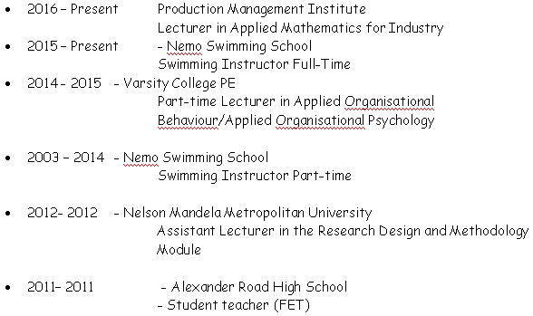 南非 68年 正在本国读教育硕士 有高中和大学教学经验 求职明年2月份的工作 地点不挑